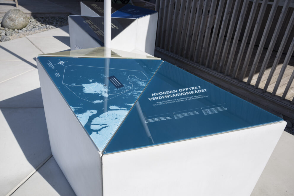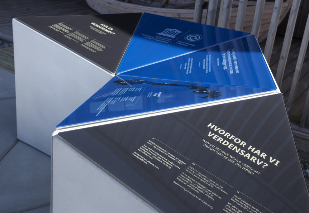 Utendørsutstillingen er plassert i et naturlig adkomstområde til verdensarvsenteret, og er alltid åpen for publikum. Utstillingen har generell informasjon om verdensarv, samt spesifikk informasjon om det verdensarvområdet der utstillingen er plassert.