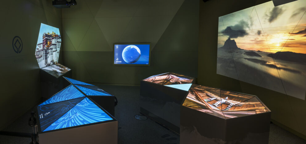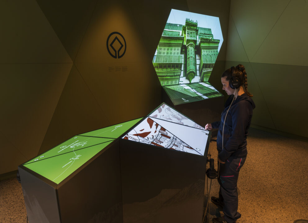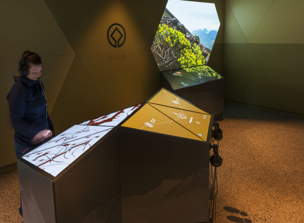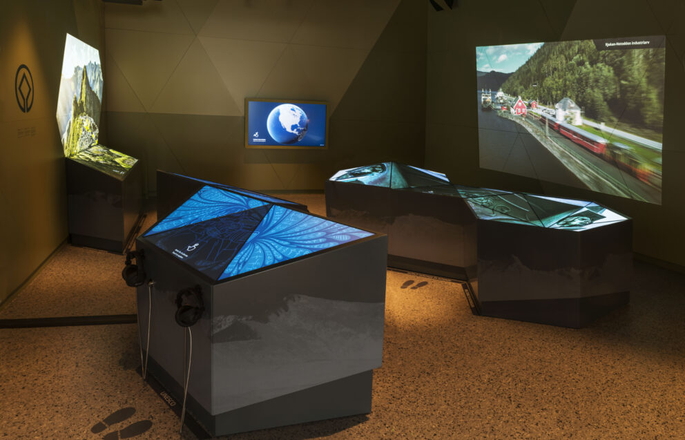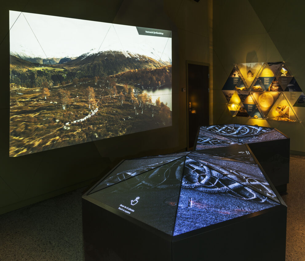 Innendørsutstillingen består av interaktive installasjoner. Den har et designkonsept med trekanter satt sammen i bølgende og skulpturelle installasjoner, inspirert av fjell og det norske landskapet.