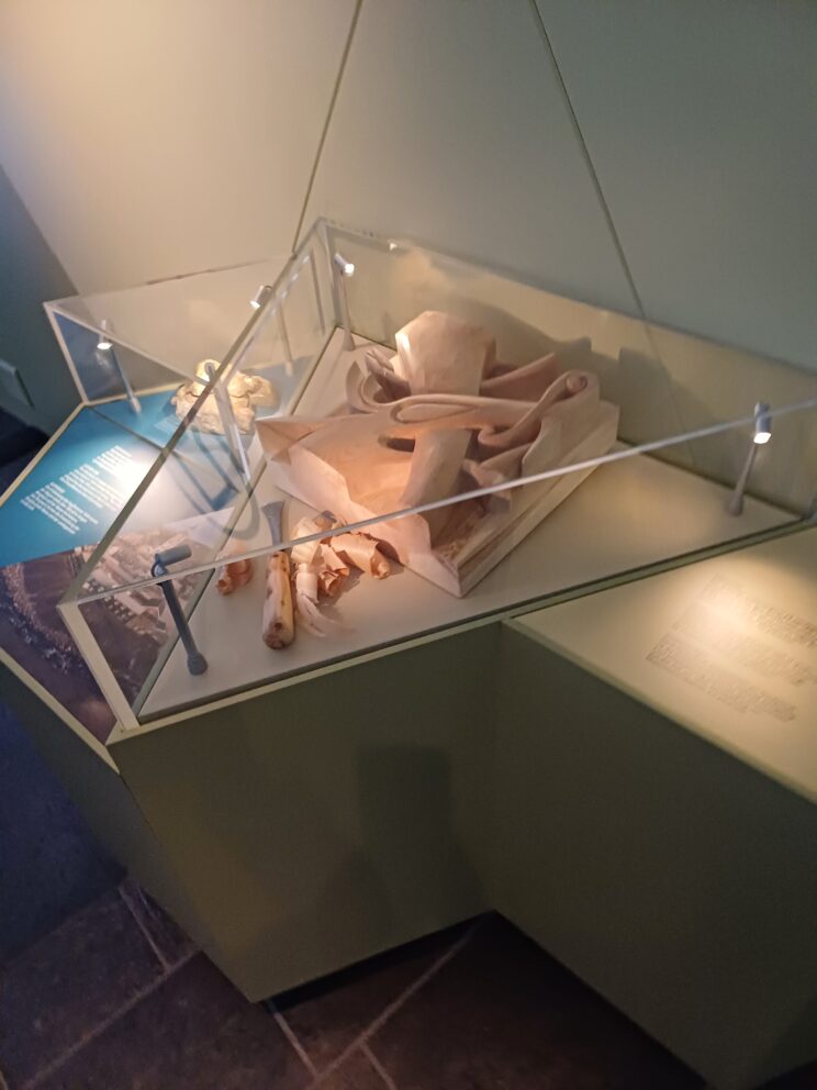 Detaljar frå Urnes. Utstillinga gjer informasjon om dei åtte norske verdsarvområda, slik som her kor utstillinga fortel om Urnes stavkyrkje.