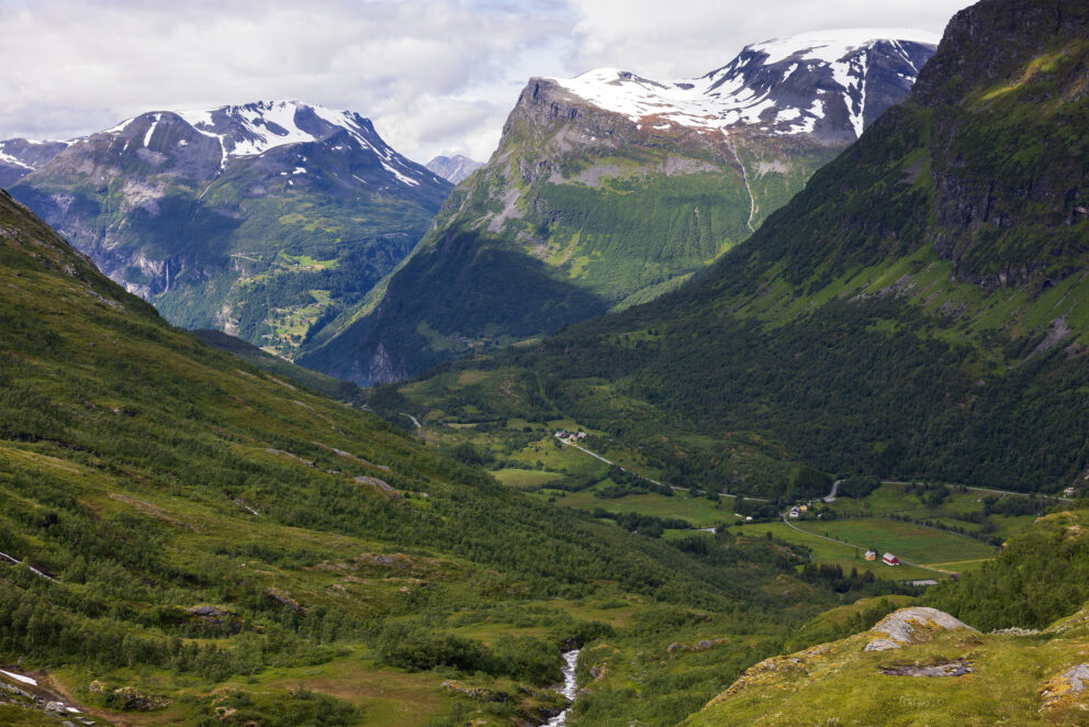 Vestnorsk fjordlandskap, Geirangerfjorden. Frå kulturlandskapet innanfor Flydalsjuvet.