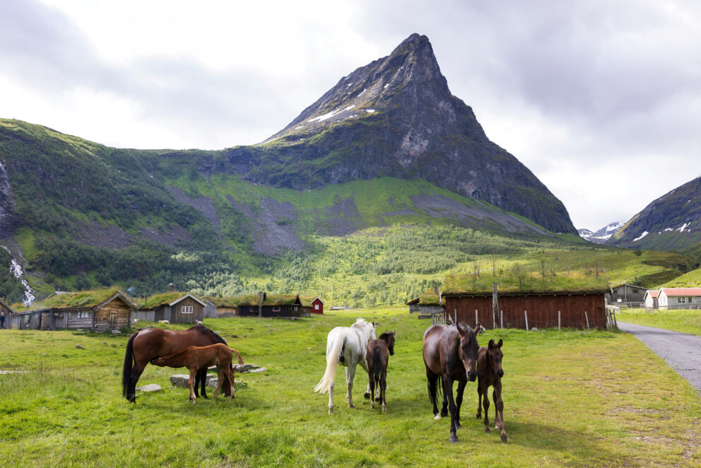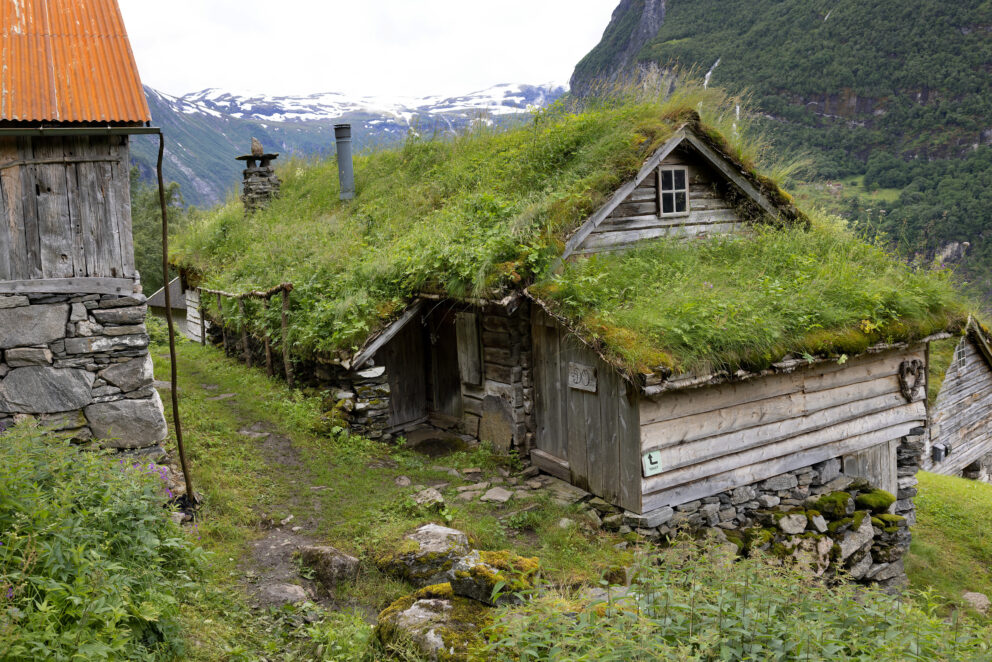 Vestnorsk fjordlandskap, Geirangerfjorden. Den vakre Herdalssetra ligg 520 moh. opp frå bygda Norddal og er ein del av verdsarvområdet. Her er det framleis seterdrift og mogleg å kome på besøk.