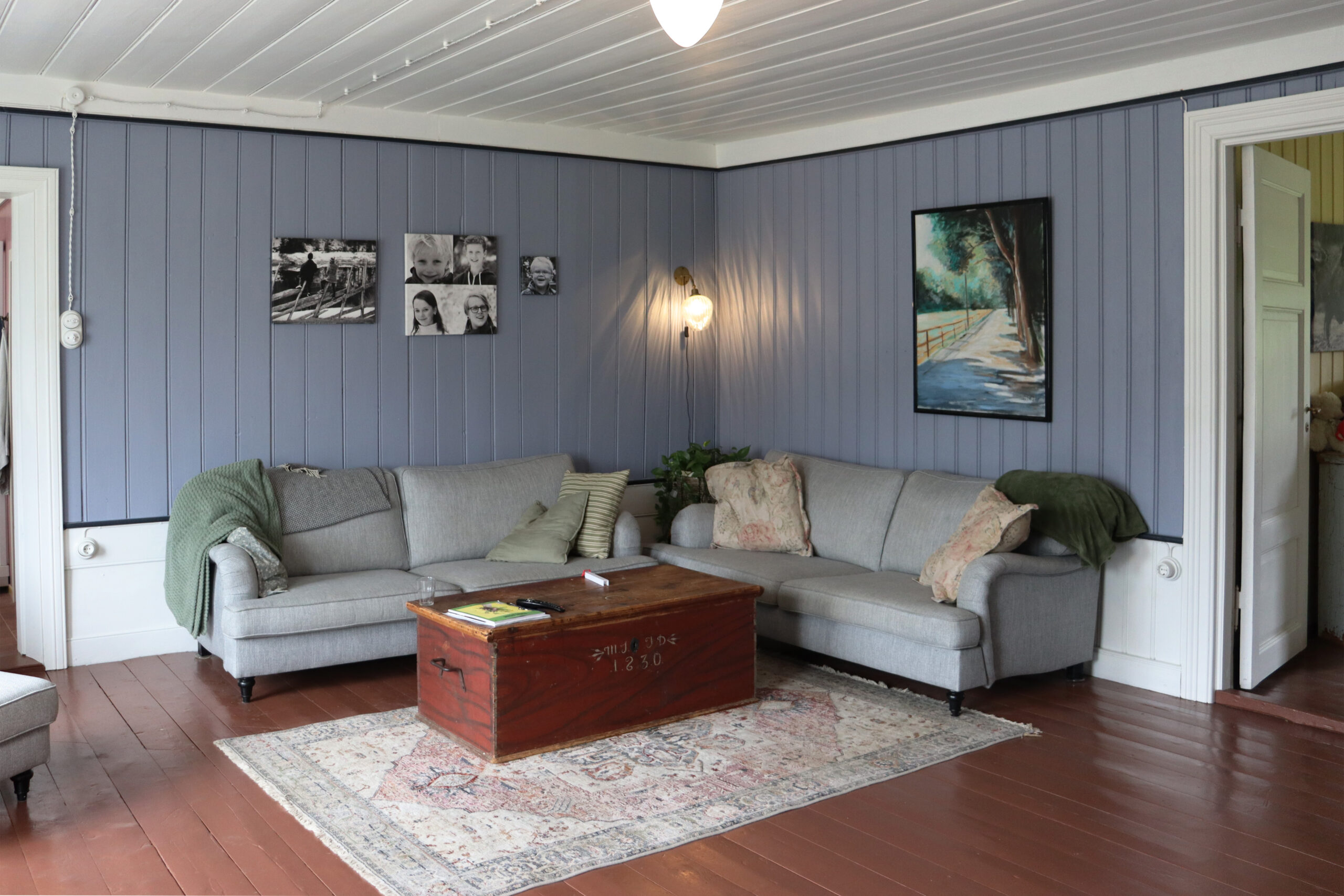 Nye gulv, samme materialer: I noen av rommene var gulvene såpass skadet at de måtte skiftes. Her sees nye furugulv på kjøkkenet og i spisestua.