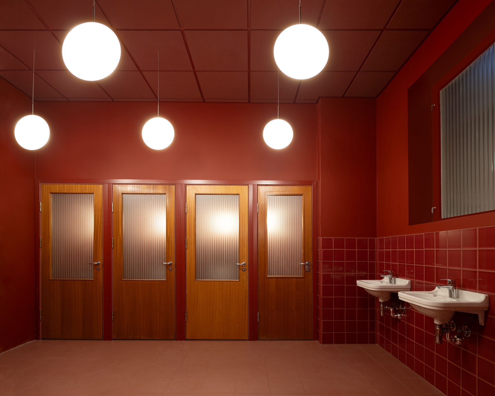 Det opphavlege mønstergolvet i kvartsvinyl var for slite til å bevarast i korridor- og kontorareala, men inspirerte til nye linoleumsgolv i liknande fargar. Desse vart spesialbestilte som fliser, noko som kravde meir tilpassing, men gjorde det mogleg å spele vidare på det opphavlege uttrykket. Dette bidrog til at nye areal kommuniserer godt med dei verna delane av bygget.