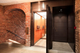 I underetasjen vart den sekundære heissjakta opna og brukt til å etablere gjennomgang til gjestetoalett. Foto: Alexandria Algard architects