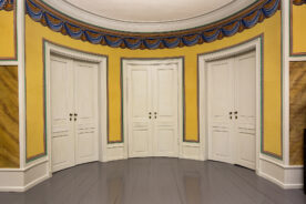 Det var viktig å bevare dei arkitektoniske kvalitetane i hovudtrapperommet og samtidig løyse behova for sikring og universell utforming. Foto: Alexandria Algard architects