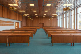 På eit par område i trapperommet vart det søkt om og gitt dispensasjon frå tekniske krav til sikring grunna verneomsyn. Det eine gjaldt høgda på rekkverket i hovudtrappa, som var målt til 88,4 cm frå trinnforkant. Dette er eit avvik på 16 mm frå minimumskravet. Det vart vurdert som ubetydeleg og ikkje vesentleg for tryggleiken. Det andre var mellomrommet mellom spilene i trappa, som er 5 cm større enn kravet på 10 cm. Her var vurderinga at utforminga av hovudtrappa er heilt sentral i dei verna interiøra og difor ikkje bør endrast. I tillegg er brukargruppa i bygningen vaksne menneske som ikkje vil ha risiko for fall gjennom rekkverket. Om bruken av bygningen blir endra slik at barn blir ein del av brukargruppa, må ein gjere ei ny vurdering.
