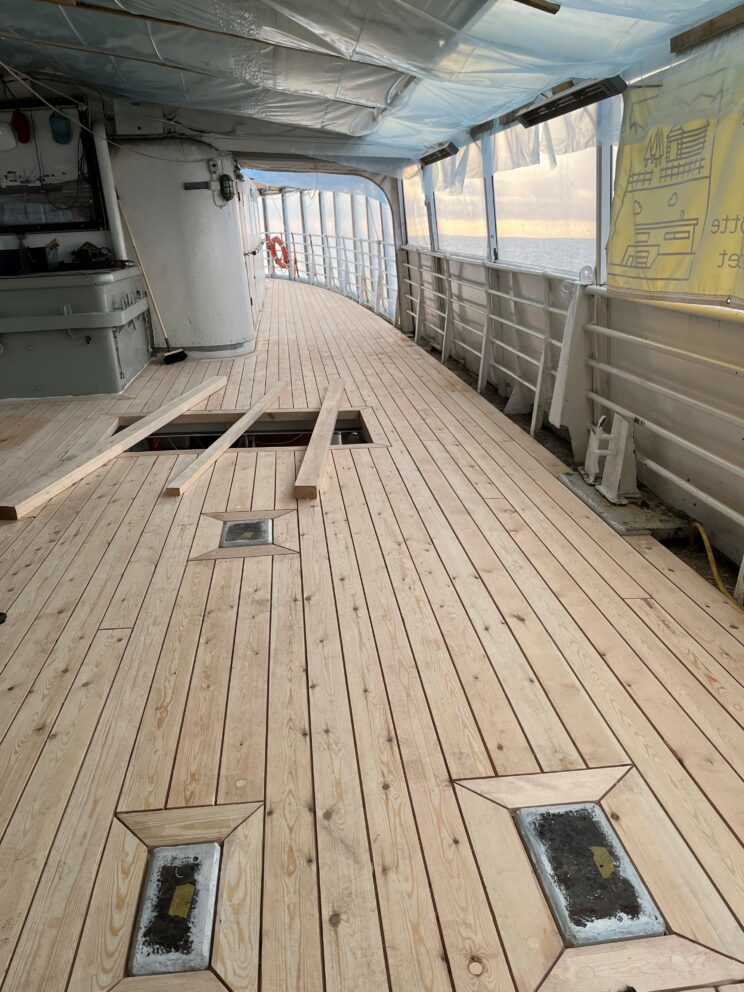 Verneflåten: Dekket på Gamle Salten før arbeider.