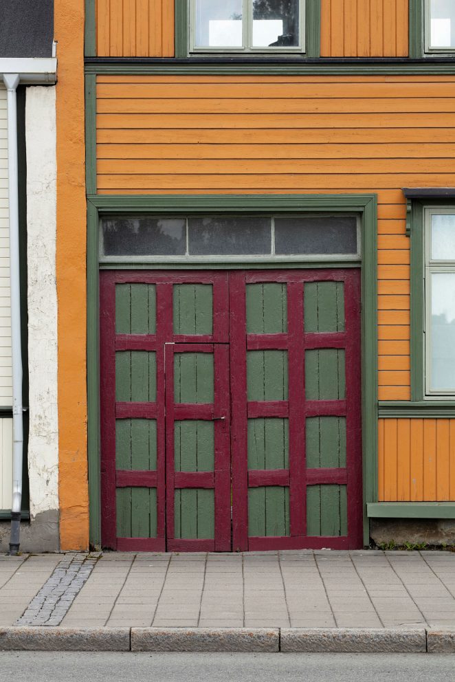 Ho viser oss rundt i sentrum. Vi går nedover gatene og ser korleis den fargerike trearkitekturen framleis pregar sentrum.