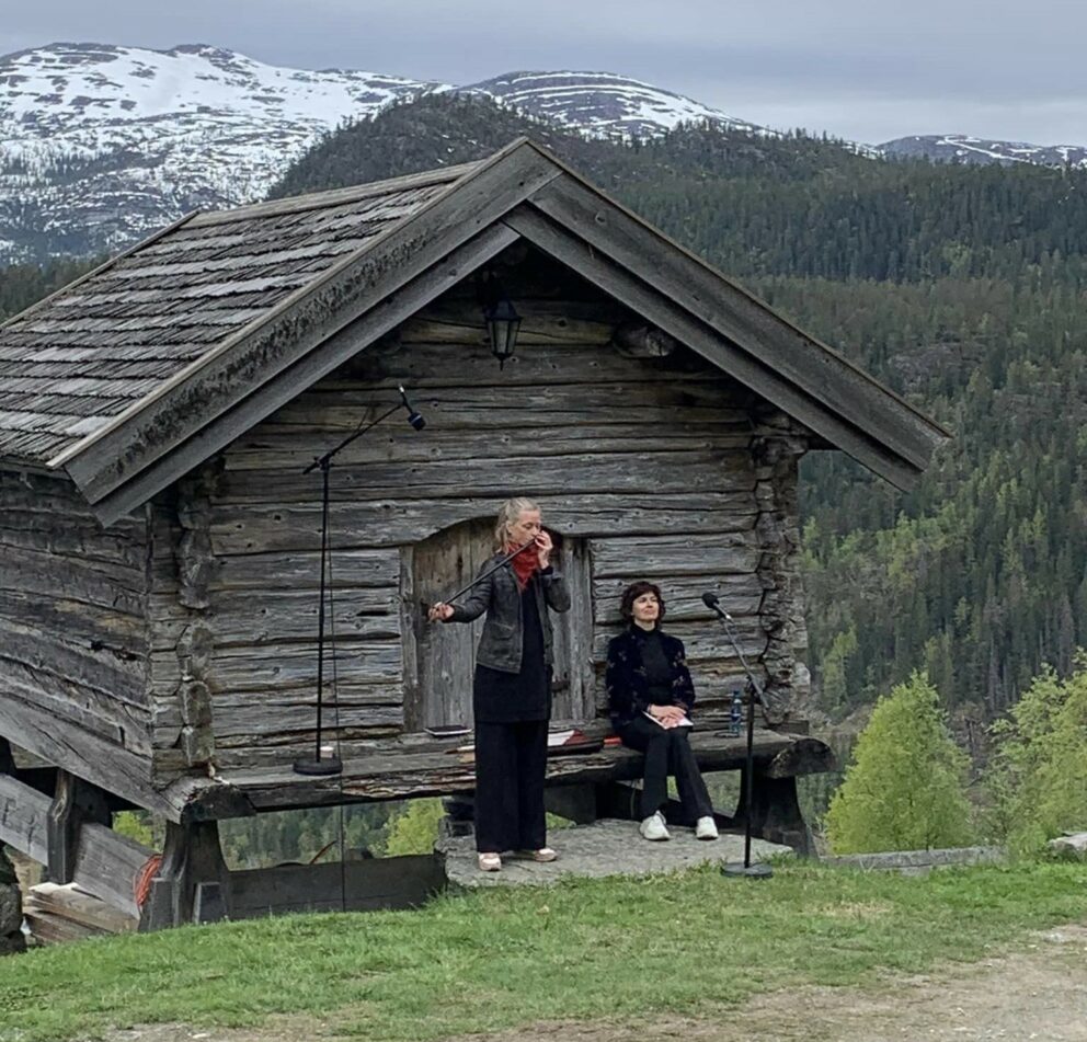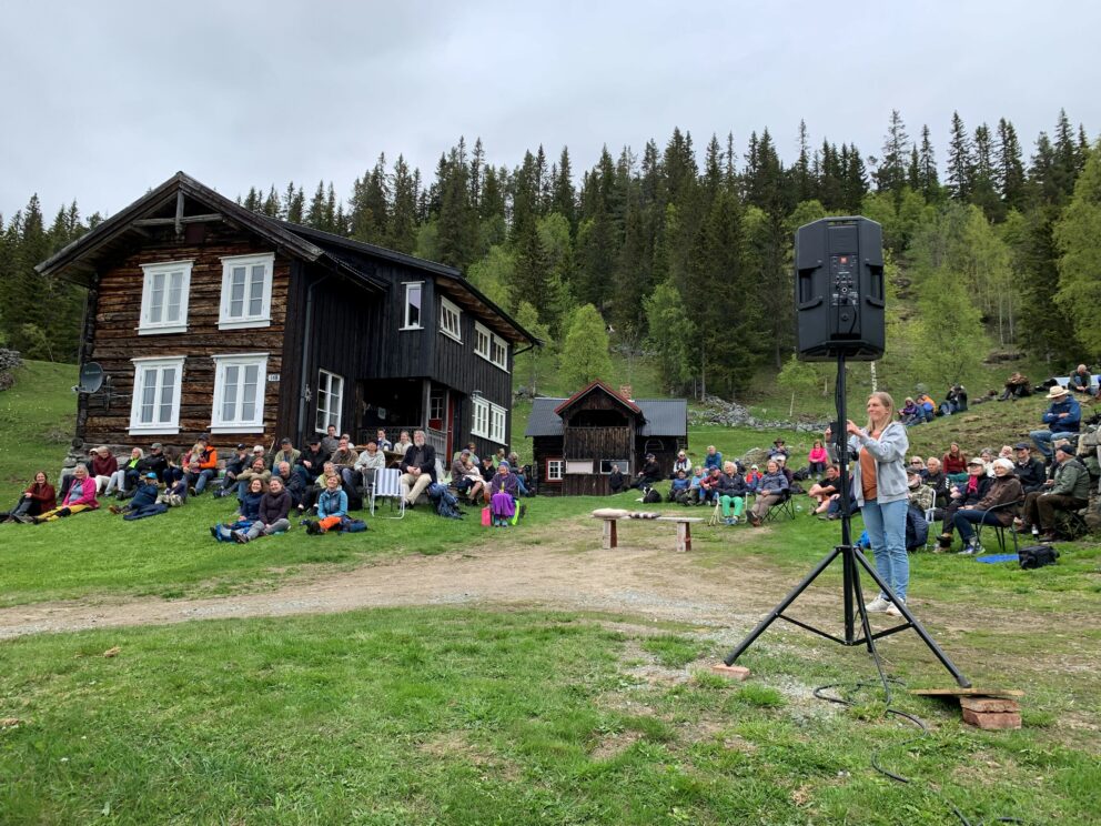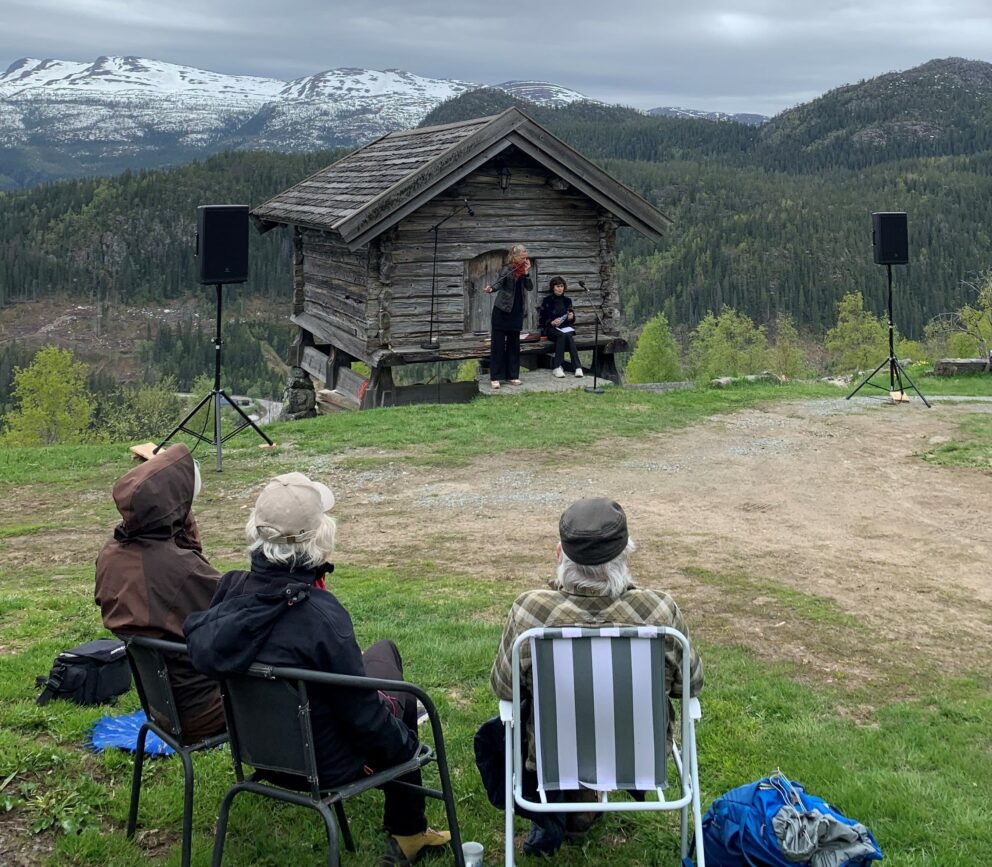 Konserten “Seljesong” med Silje Hegg og Torhild Ostad høvde ypparleg inn i det vakre kulturlandskapet med tunet på Øvre Blika og utsikten til Mælefjell, Skorve og Hestenutan som ramme. Grunneigar Arne Magne Kimerud stilte tunet til disposisjon for nærare 100 personar under konserten. Takk til Kimerud og Stein E. Schjelle som begge gav oss lov til å parkere på eigedomane sine.