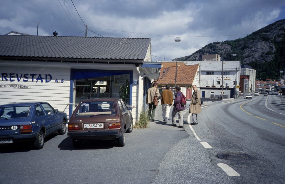 Selv er Wilberg godt synlig i rosa og rødt der hun står på toppen av Damstredet i Oslo, til ære for fotografen. Brilleinnfatningen er på sin side blåere enn et skilt fra Oslo Byes Vel. Området Bergfjerdingen var opprinnelig en forstad som kunne vært revet uten motstemmer som Byantikvaren. En tidlig septemberdag med sol er den bilfrie brosteinen rene gjennomfartsåren for gående til Grünerløkka. En utenlandsk dame i kjole tar bilde av seg selv ved stallen til Veslebrunen, hesten til Henrik Wergeland. En ung mann guider en gruppe mot neste bevarte trehusmiljø, som ble malt av Edvard Munch: «Let’s go to Telthusbakken, it’s really famous».