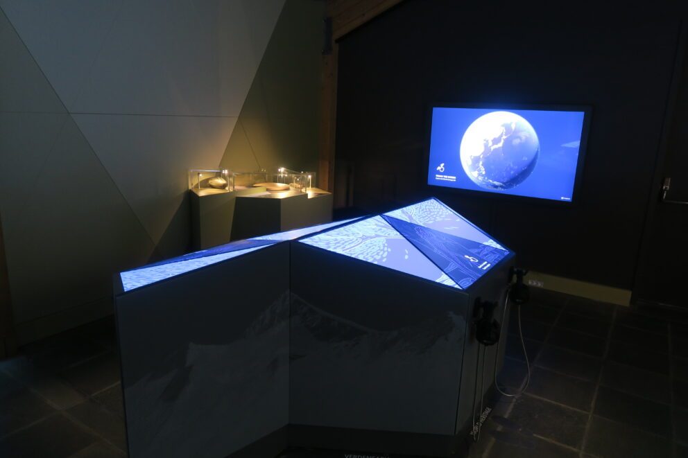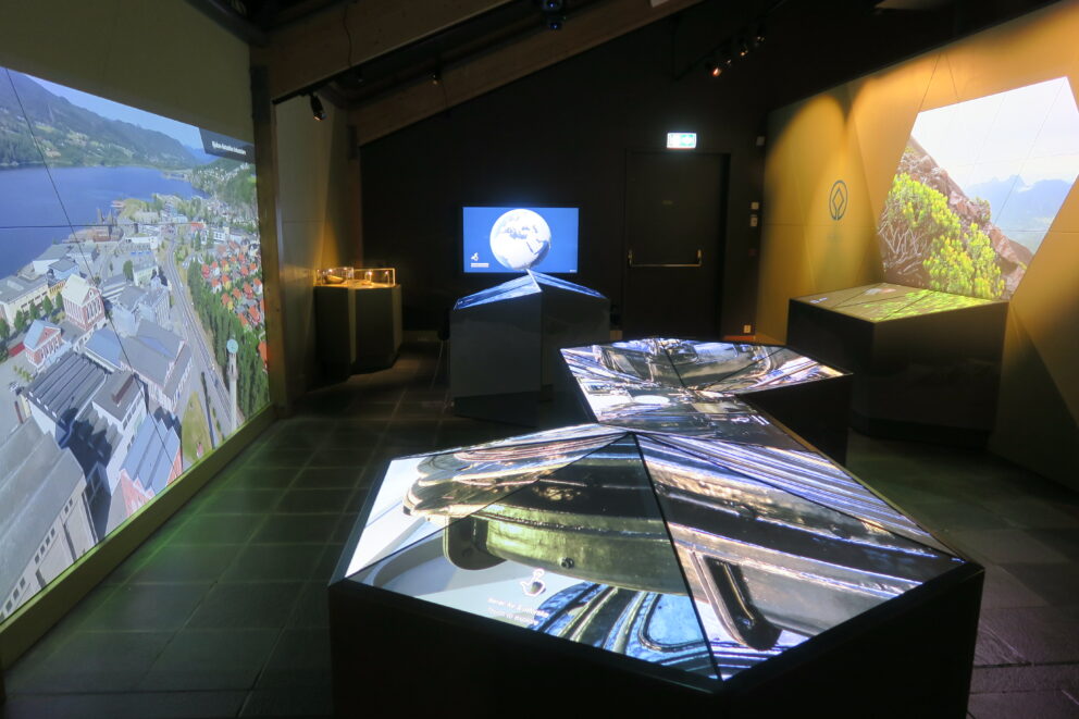 Innendørsutstillingen består av interaktive installasjoner. Den har et designkonsept med trekanter satt sammen i bølgende og skulpturelle installasjoner, inspirert av fjell og det norske landskapet.