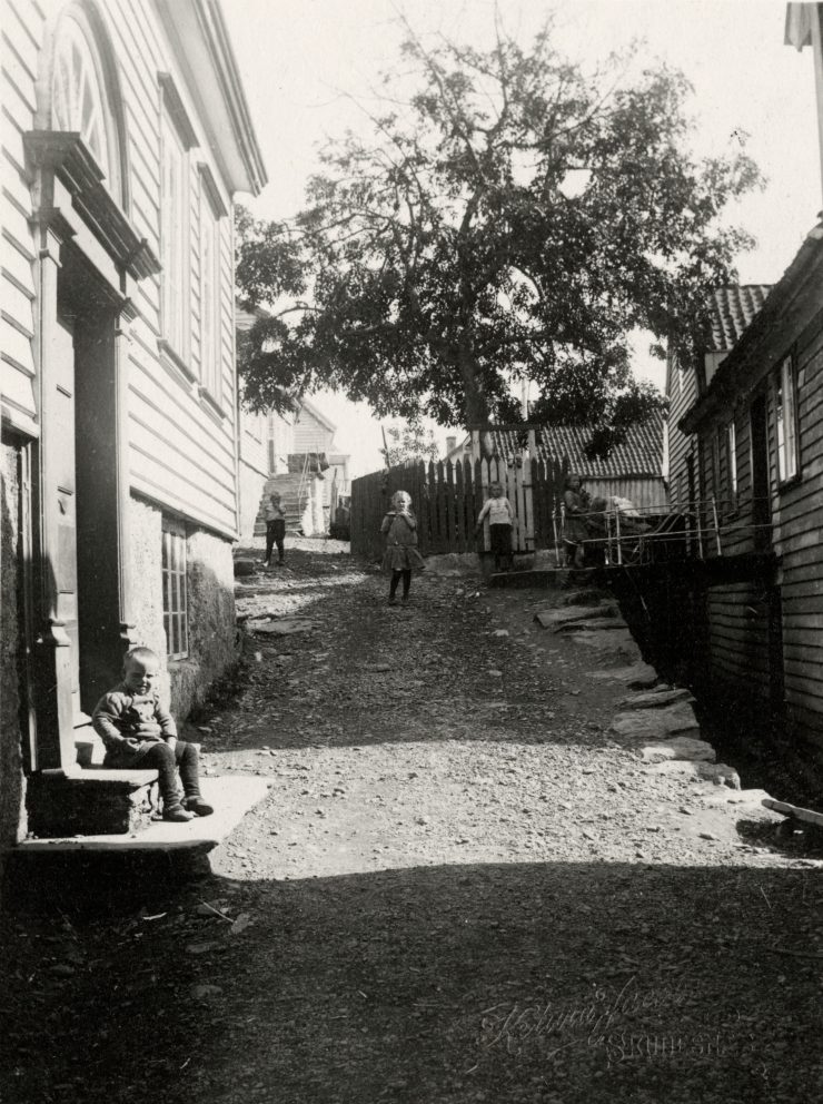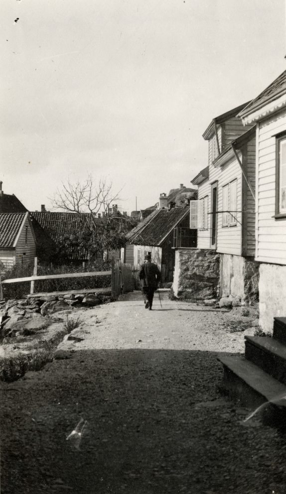 Men, inne mellom husa er det derimot frodige hagar. I den gamle delen av byen ligg desse hagane gjerne bak husa og i små søkk i terrenget, i le for vind og vær. Mange er skjult for folk som passerer i gata, men om du kikkar over gjerdet eller gjennom ein liten sprekk så ser du dei. Nokre av husa har også små forhagar, gjerne omkransa av kvite stakittgjerde.