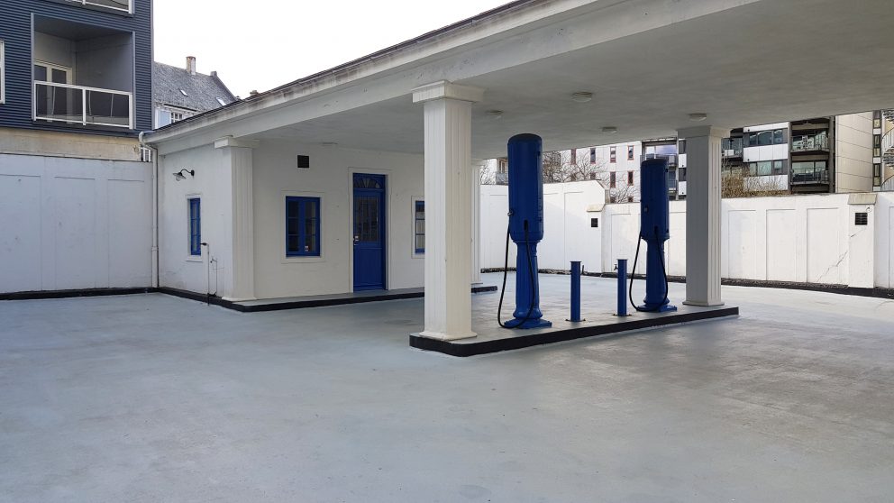 Stasjonen er ført tilbake til den opphavelege utforminga frå 1920-talet. To originale pumpar, tilsvarande dei som stod der på 1920-talet, vart sett opp under restaureringsarbeida. Den eine av dei er kopla til bensintanken, slik at det faktisk er mogleg å fylle bensin ved stasjonen.
